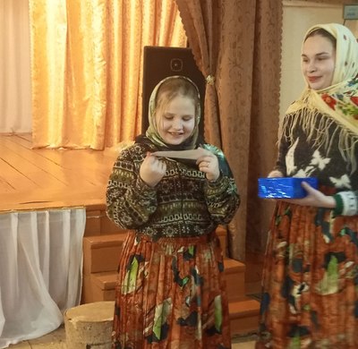 В завершении программы желающие участвовали в крещенских гаданиях, из волшебного короба тянули по листочку, и вслух читали добрые пожелания-предсказания на Новый год.