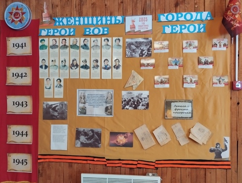 Работниками Антонихинского СК, Смирновой С.Ю. и Хрычёвым В.А., в актовом зале оформлена выставка к году Защитника Отечества и 80-летия Победы в Великой Отечественной Войне.