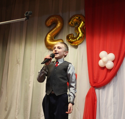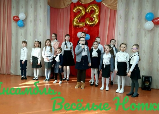 На протяжении всего концерта со сцены звучали шутки и поздравления. Несмотря на то, что 23 февраля – праздник мужской, концерт посетили и женщины, и мужчины. Неизгладимые и незабываемые впечатления у зрителей оставили дети: Алена Ширинова, Вера Христофорова, Таня Заводчикова, детский ансамбль «Веселые смайлики», детские дуэты: Чернышевич Алексей и Федченко Василий, Трушкина Александра и Кумпата Анна. Конечно, фаворитом был школьный хор, руководитель Бирюкова Н. М.