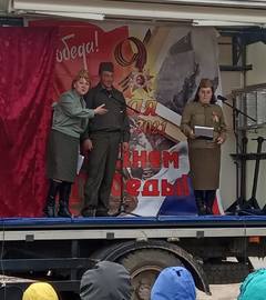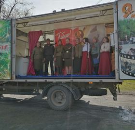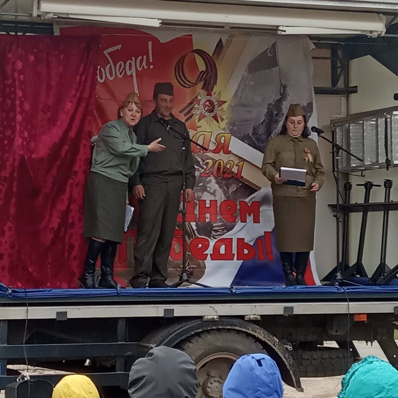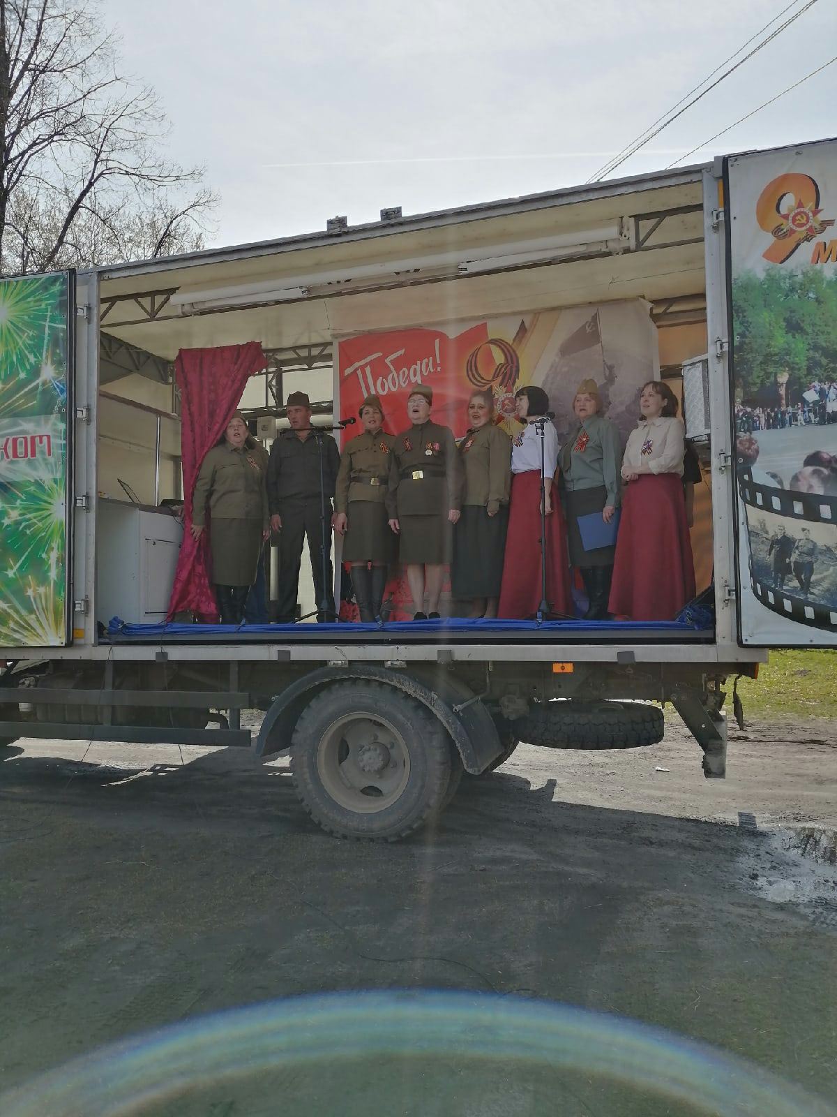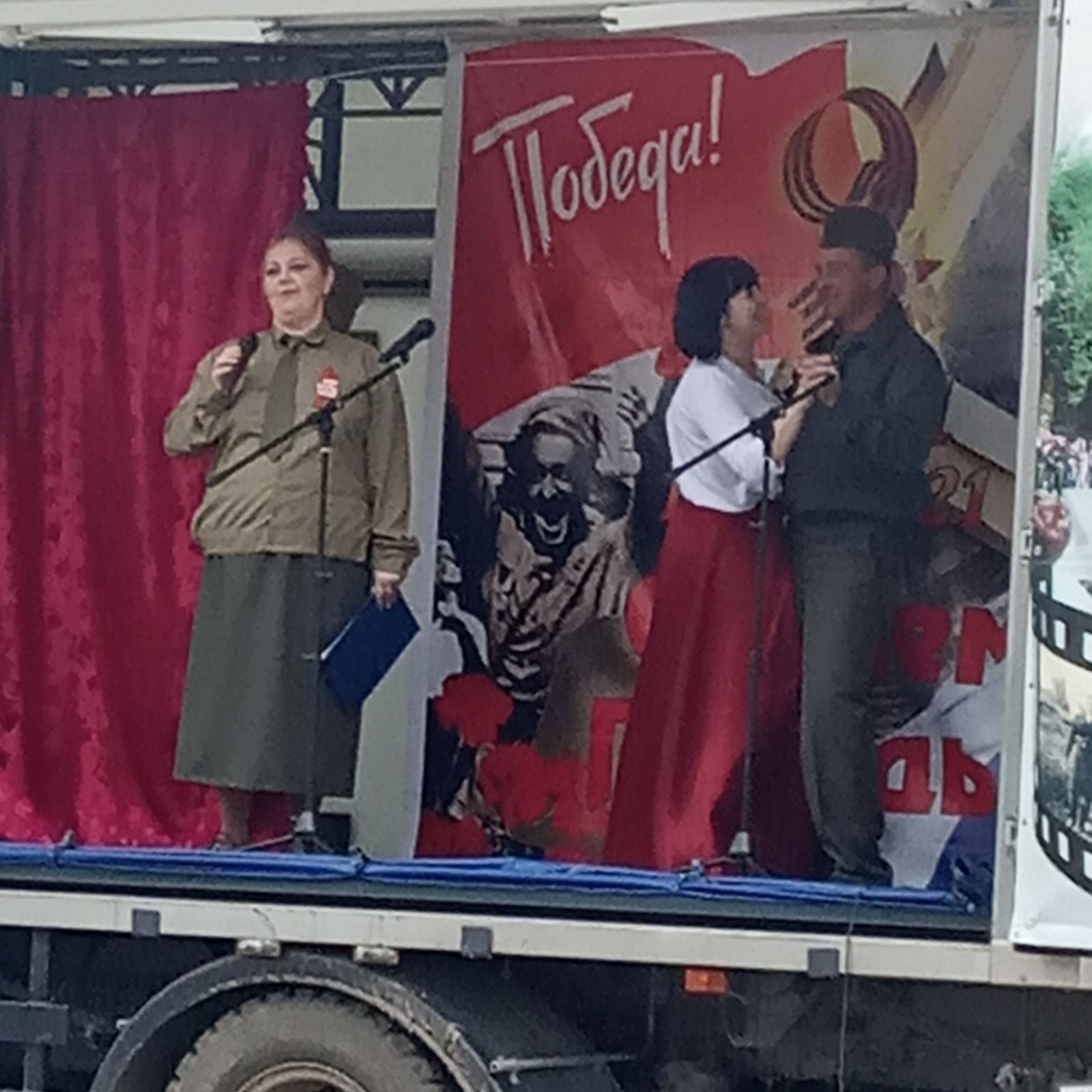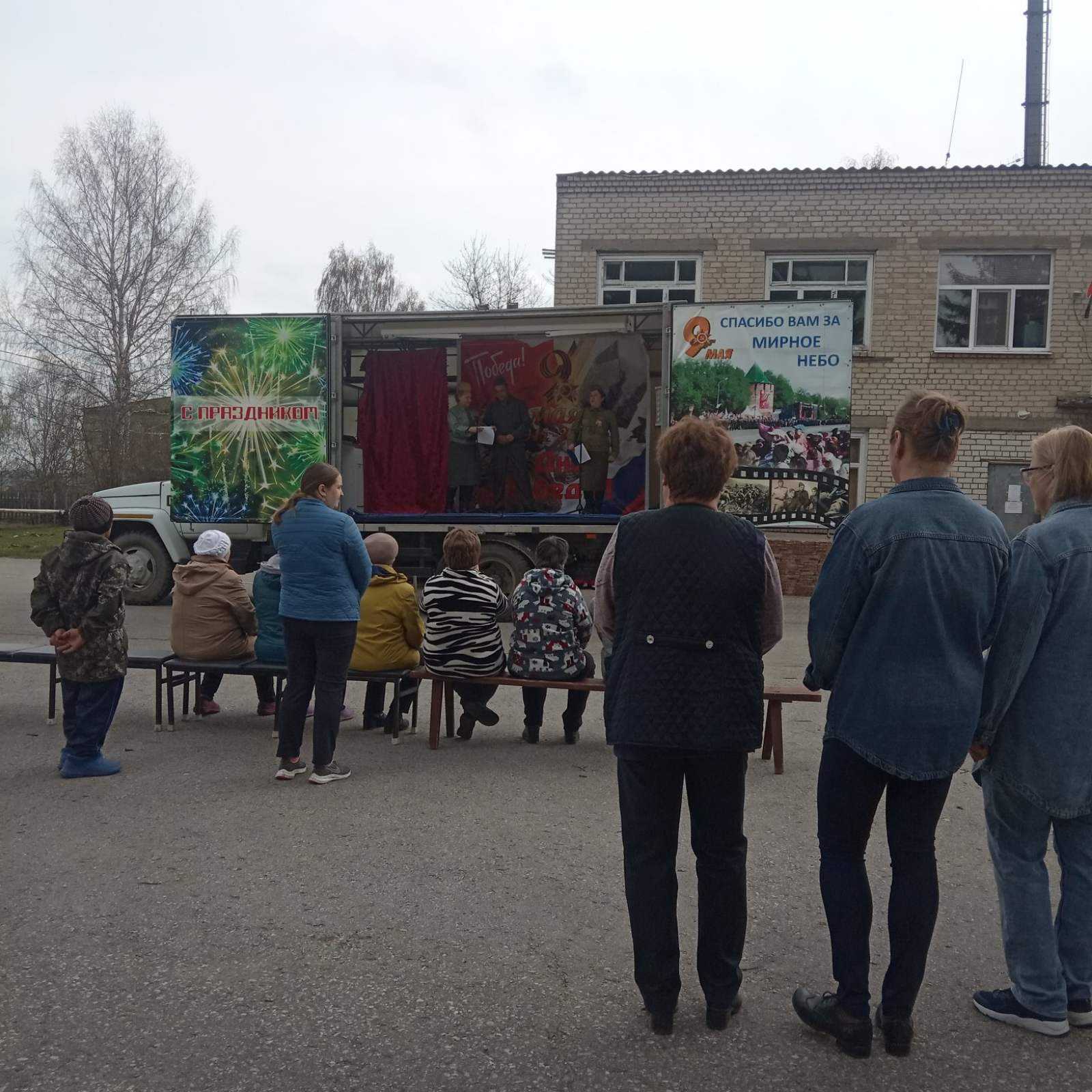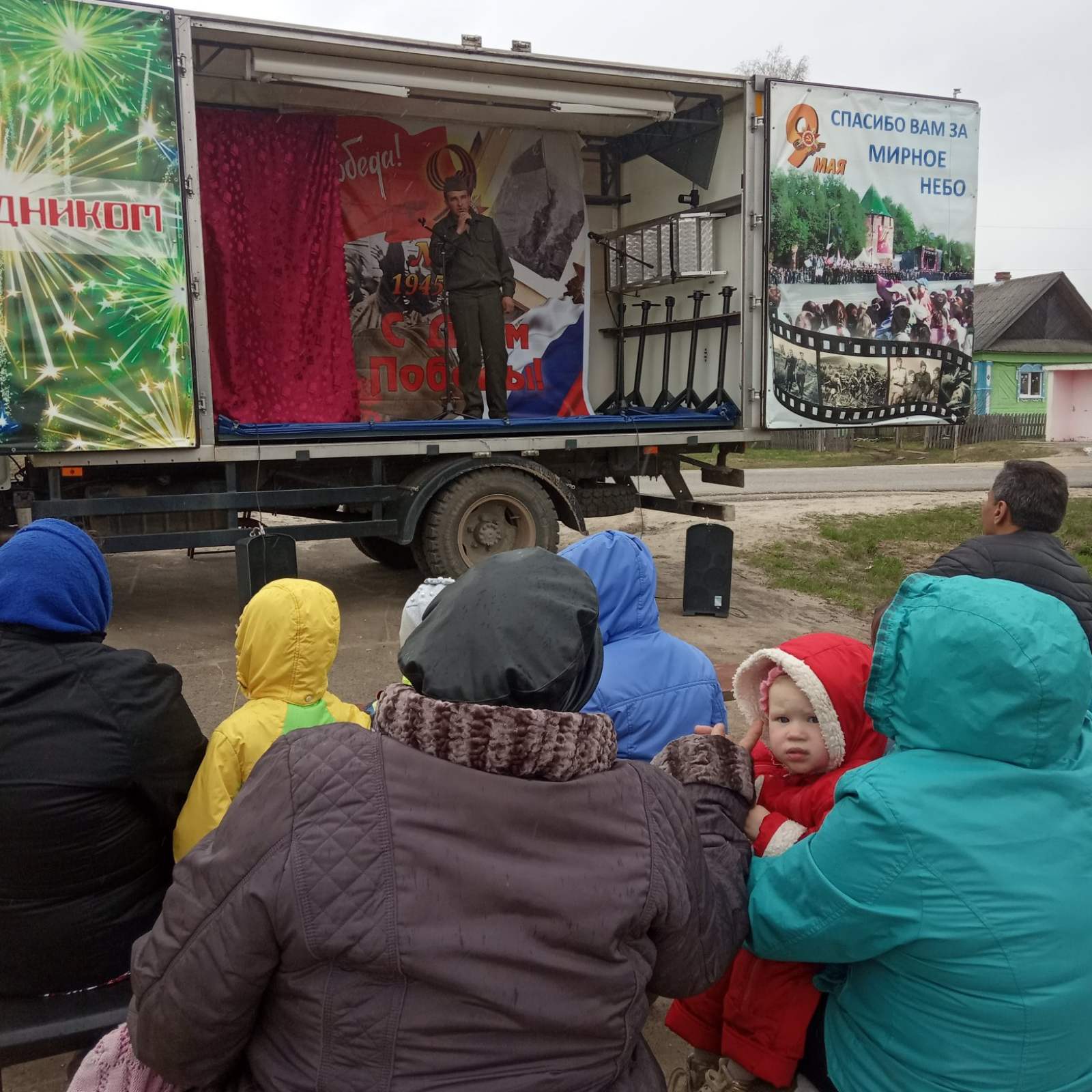 6 и 7 мая «фронтовая бригада» из сотрудников и участников художественной самодеятельности клубной системы выступила с концертами в населенных пунктах где нет учреждений культуры. На красиво оформленной машине приветствовали зрителей Катюша и Василий Теркин, который был свой в каждом пункте остановки. Фронтовая бригада проехала: п.Восход – п. Мирный – д. Ляды –д. Андреево – 6 мая, а 7 мая – д. Михаленино – д. Поспелиха – п. Кресты – д. Кулигино.