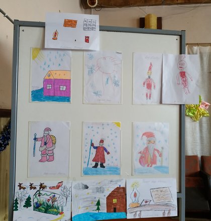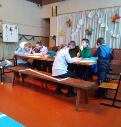 Зимние каникулы - время путешествий. По этому случаю 5 января Новоникольская детвора отправилась в мультимедийное путешествие в вотчину самого Деда Мороза. Ребята посмотрели видео презентацию «Вотчина Деда Мороза – сказка круглый год», ответили на вопросы «Викторины Деда Мороза», посмотрели старые, добрые мультфильмы: «Дед Мороз и лето», «Дед Мороз и серый волк». А затем все с удовольствием рисовали самые яркие моменты этого путешествия, за что получили сладости и мандарины.