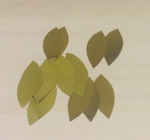 - К покрашенным веточкам приклеиваем вырезанные из цветной, зеленой бумаги листочки;