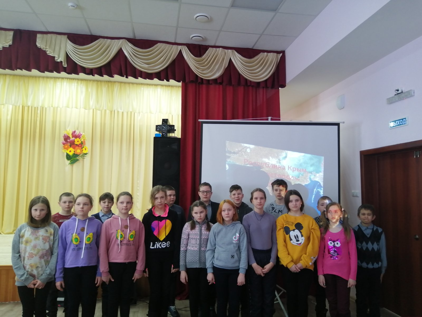 Именно в этот день в 2014 году Крым официально вошёл в состав Российской Федерации. На территории республики этот день является праздничным и выходным. Но и мы не остались в стороне и не могли не упомянуть о событиях этого дня. Сегодня для детей с. Новоникольское в Доме культуры была проведена интеллектуальная викторина «Крым – Россия навсегда». Но предварительно прошёл просмотр презентации о присоединении Крыма к России, коротко познакомили детей с историей Крыма, с его достопримечательностями.