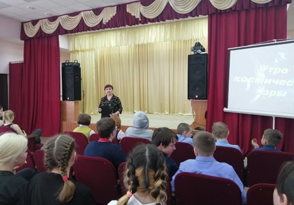 В начале мероприятия ведущая рассказала учащимся о жизни первого космонавта, о его полете в космос, о том, с чего начиналось изучение космоса, о людях, положивших начало космическим полетам, о животных, побывавших на орбите Земля. Также рассказала о первой женщине, совершившей полет в космос, Валентине Терешковой.