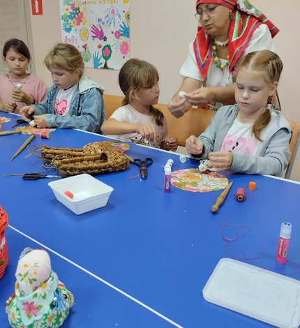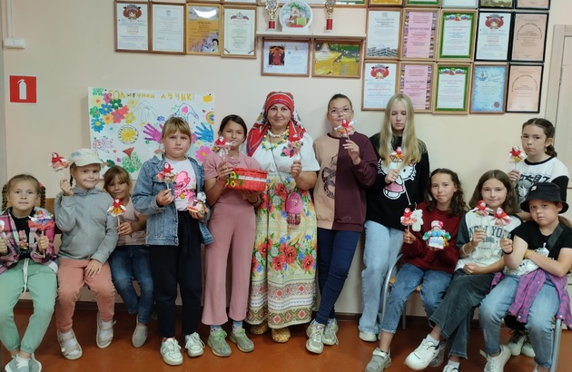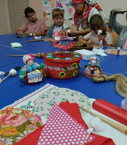 Создать сайт на a5.ru 23 августа у нас для ребят было не простое занятие. А всё, потому что к нам приходила наша Макарьевская рукодельница Валентина Евгеньевна Левчук, которая провела для детей мастер-класс по изготовлению куклы-оберега «Хороводница». Для начала Валентина Евгеньевна показала девочкам свои работы, которые она делает своими руками, это куклы-обереги, бусы, сумочки, головные уборы (да, она ещё и шьёт замечательно!) и мн. другое. Рассказала о старинных обычаях и из каких материалов делаются куклы. Время пролетело незаметно, ребята были так увлечены процессом, что по завершении не хотелось расходиться.